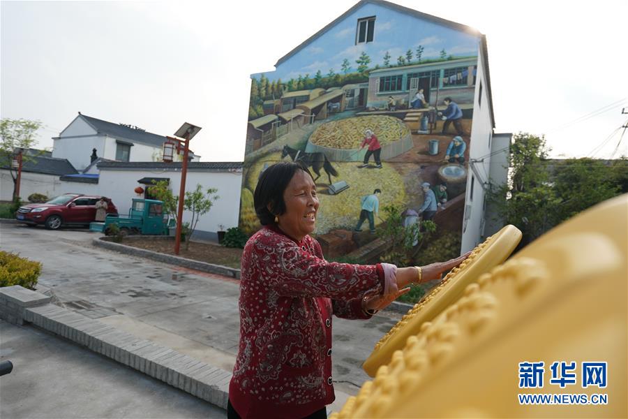 在宿遷市耿車鎮(zhèn)大眾村,村民劉翠珍在家旁的村民廣場(chǎng)健身(4月16日攝)。新華社記者 季春鵬 攝