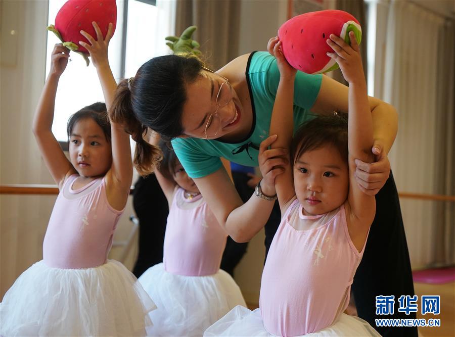 在宿遷市洋河新區(qū)新城名苑社區(qū)活動(dòng)中心,小朋友們?cè)诶蠋煹闹笇?dǎo)下練習(xí)舞蹈動(dòng)作(7月15日攝)。新華社記者 季春鵬 攝
