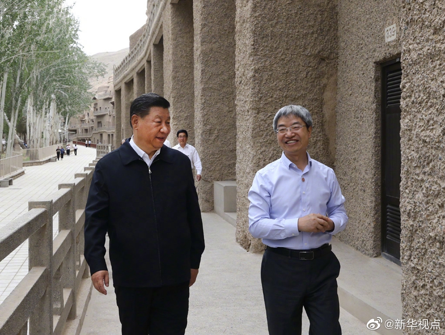 習(xí)近平總書記19日在甘肅省考察調(diào)研。當(dāng)天下午,他來到全國重點文物保護(hù)單位敦煌莫高窟,實地考察文物保護(hù)和研究、弘揚(yáng)優(yōu)秀歷史文化等情況。(文字:張曉松、朱基釵 攝影:鞠鵬、謝環(huán)馳)