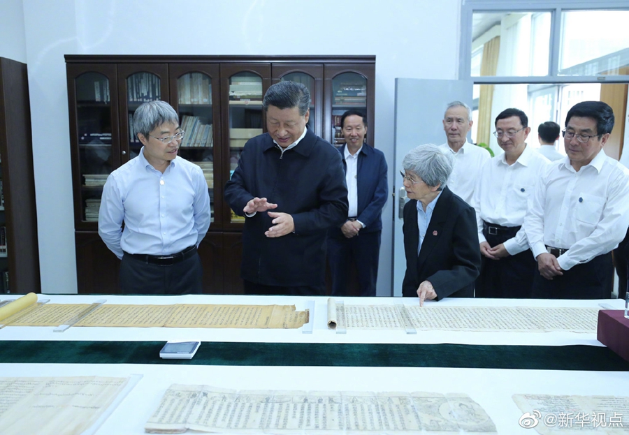 習(xí)近平總書記19日下午來到敦煌研究院,察看珍藏文物和學(xué)術(shù)成果展示,并同有關(guān)專家、學(xué)者和文化單位代表座談。(文字:張曉松、朱基釵 攝影:鞠鵬、謝環(huán)馳)