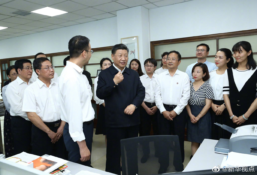 21日下午,正在甘肅考察的習近平總書記來到位于蘭州市區(qū)的讀者出版集團有限公司,了解企業(yè)歷史沿革、出版發(fā)行、經營管理等情況,看望《讀者》編輯部工作人員。習近平對大家說,人民群眾多讀書,我們的民族精神就會厚重起來、深邃起來。要提倡多讀書,建設書香社會。(文字記者:張曉松、朱基釵 攝影記者:鞠鵬、謝環(huán)馳)