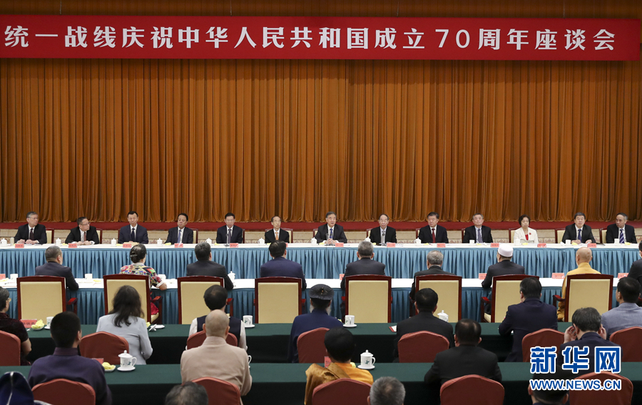 新華社北京9月11日電(記者王琦)統(tǒng)一戰(zhàn)線慶祝中華人民共和國成立70周年座談會11日在京召開。中共中央政治局常委、全國政協(xié)主席汪洋出席會議并講話。他強(qiáng)調(diào),統(tǒng)一戰(zhàn)線是中國共產(chǎn)黨領(lǐng)導(dǎo)的廣泛政治聯(lián)盟,具有鮮明的中國特色,過去是、現(xiàn)在是、今后仍然是黨的事業(yè)取得勝利的重要法寶。要以習(xí)近平新時代中國特色社會主義思想為指導(dǎo),深入學(xué)習(xí)貫徹習(xí)近平總書記關(guān)于加強(qiáng)和改進(jìn)統(tǒng)一戰(zhàn)線工作的重要思想,切實把中共中央對統(tǒng)一戰(zhàn)線的決策部署落實下去、把廣大統(tǒng)一戰(zhàn)線成員的智慧力量凝聚起來,為實現(xiàn)中華民族偉大復(fù)興的中國夢共同奮斗。