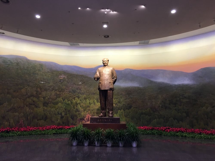 展覽序廳,矗立著高達(dá)3.8米的毛澤東主席雕塑,兩側(cè)的大型浮雕,刻畫了1949年的兩大標(biāo)志性歷史事件: