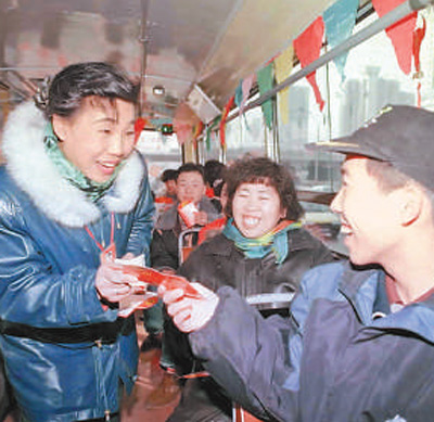 “北京有個李素麗(見圖左一,新華社發(fā)),服務那可真周到?!睅资赀^去了,公交車售票員李素麗,仍被人們津津樂道。