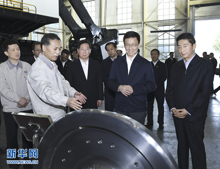 太原重型機(jī)械集團(tuán)有限責(zé)任公司是新中國自行設(shè)計(jì)建設(shè)的第一座重型機(jī)械廠。韓正來到這里,考察礦山挖掘機(jī)、高鐵輪對等先進(jìn)機(jī)械研發(fā)生產(chǎn)情況。韓正強(qiáng)調(diào),重型機(jī)械是國之重器,是先進(jìn)制造業(yè)的重要支撐,要加快產(chǎn)品智能化步伐,提高生產(chǎn)線和生產(chǎn)設(shè)備的國產(chǎn)化率,實(shí)現(xiàn)精密零部件加工的技術(shù)突破,積極拓展“一帶一路”沿線國家市場,加強(qiáng)人才隊(duì)伍建設(shè),打造具有國際競爭力的高端裝備制造產(chǎn)業(yè)。韓正走進(jìn)生產(chǎn)車間,勉勵(lì)一線工人抓住轉(zhuǎn)型升級機(jī)遇,推動(dòng)企業(yè)加快發(fā)展,實(shí)現(xiàn)個(gè)人價(jià)值。