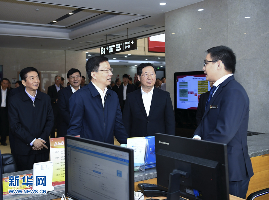 10月21日至22日,中共中央政治局常委、國務(wù)院副總理韓正在山西省調(diào)研。這是10月21日,韓正來到山西省政務(wù)服務(wù)中心,考察政府職能轉(zhuǎn)變和“放管服”改革推進(jìn)情況。 新華社記者 燕雁 攝