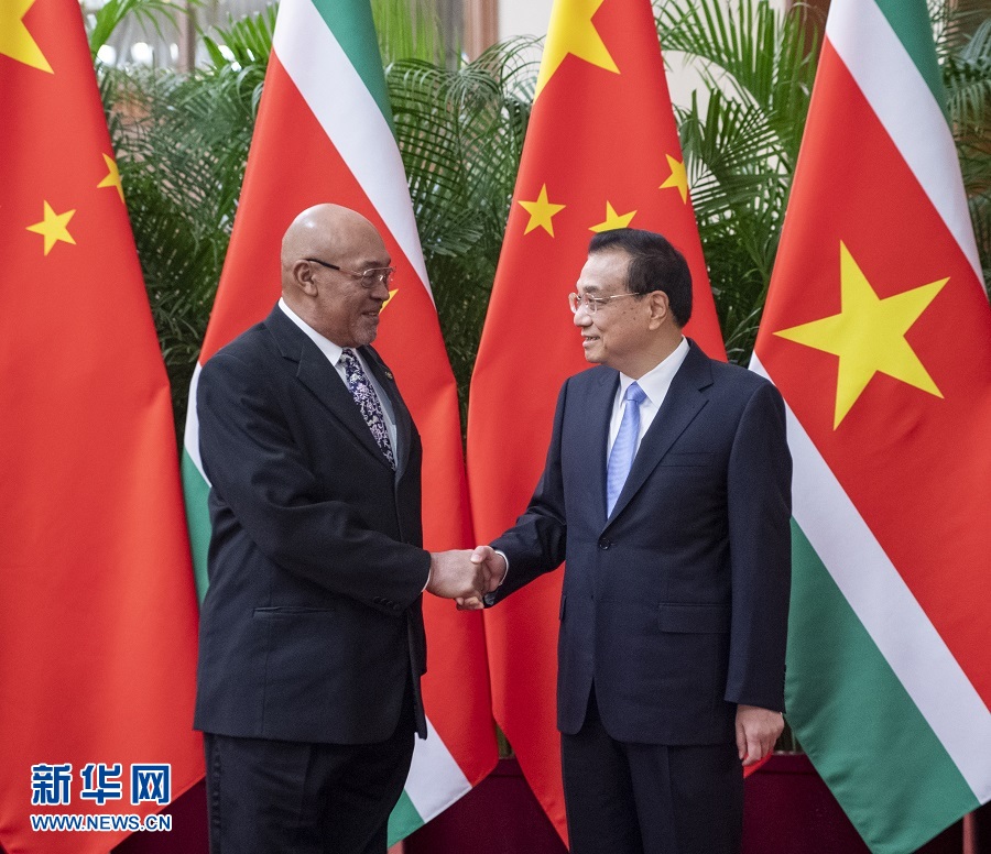 李克強(qiáng)表示,中國和蘇里南雖然相隔萬里,但兩國人民之間友好情誼深厚。建交40多年來,雙邊關(guān)系始終健康穩(wěn)定發(fā)展。習(xí)近平主席將同總統(tǒng)先生舉行會(huì)談,推動(dòng)中蘇關(guān)系邁上新臺(tái)階。我們?cè)咐^續(xù)在相互尊重、平等相待的基礎(chǔ)上,同蘇方增進(jìn)政治互信,對(duì)接發(fā)展戰(zhàn)略,促進(jìn)務(wù)實(shí)合作,擴(kuò)大人文交流,更好實(shí)現(xiàn)互利共贏。