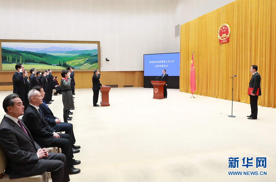 根據(jù)《中華人民共和國(guó)憲法》和《國(guó)務(wù)院及其各部門任命的國(guó)家工作人員憲法宣誓組織辦法》,2019年7月至11月國(guó)務(wù)院任命的14個(gè)部門和單位的16名負(fù)責(zé)人依法進(jìn)行憲法宣誓。