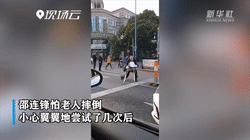 在上海,一名輔警為背老人過(guò)馬路單膝下跪。
