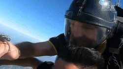 在山東,失去雙腿的青年成功挑戰(zhàn)跳傘,露出了燦爛的笑容。