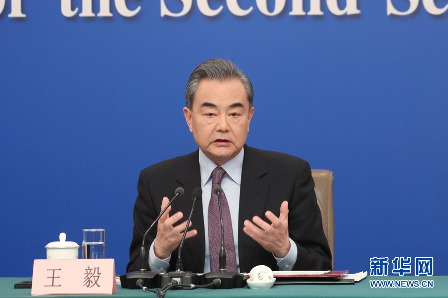 十三屆全國人大二次會議新聞中心3月8日10時在梅地亞中心新聞發(fā)布廳舉行記者會,邀請國務委員兼外交部長王毅就“中國外交政策和對外關系”相關問題回答中外記者提問。圖為王毅回答記者提問。新華網(wǎng)/中國政府網(wǎng) 陳杰 攝