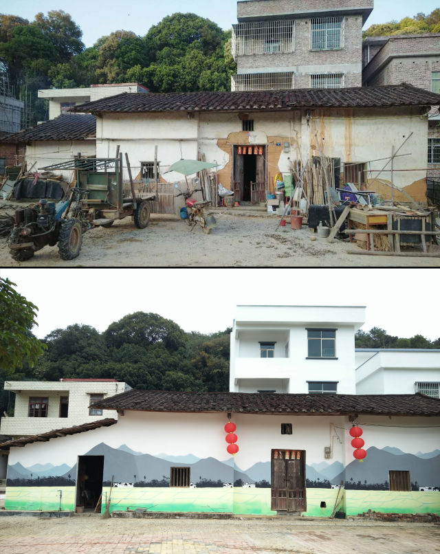 上圖為清遠(yuǎn)市連樟村改造前的老房子,下圖為2018年12月11日拍攝清遠(yuǎn)市連樟村改造后房屋新貌。新華社發(fā)