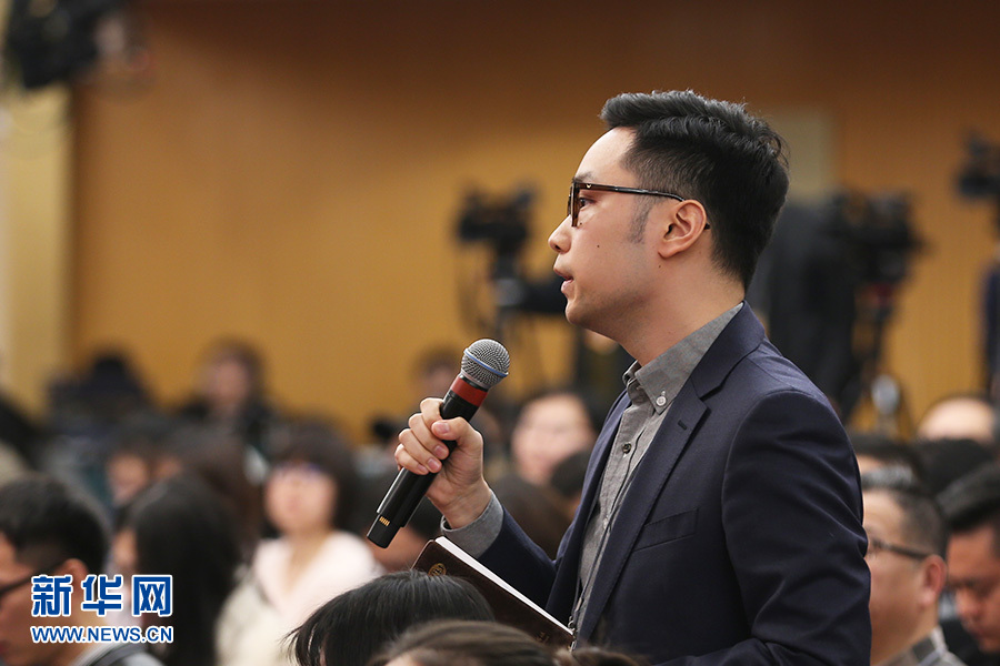 十三屆全國人大二次會議新聞中心3月9日(星期六)15時在梅地亞中心新聞發(fā)布廳舉行記者會,邀請國務院國資委主任肖亞慶,副主任翁杰明,秘書長、新聞發(fā)言人彭華崗就“國有企業(yè)改革發(fā)展”相關問題回答中外記者提問。圖為中國新聞社記者提問。新華網(wǎng)/中國政府網(wǎng) 劉廈 攝