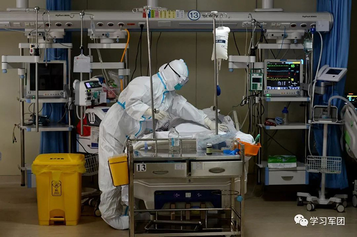 1月27日上午,海軍軍醫(yī)大學(xué)醫(yī)療隊(duì)醫(yī)護(hù)人員在漢口醫(yī)院重癥監(jiān)護(hù)室對(duì)新型冠狀病毒感染的肺炎患者進(jìn)行救治。醫(yī)護(hù)人員加強(qiáng)巡視,觀察輸液滴數(shù)。解放軍報(bào)記者范顯海攝