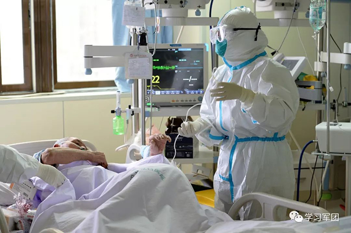 1月27日上午,海軍軍醫(yī)大學(xué)醫(yī)療隊(duì)醫(yī)護(hù)人員在漢口醫(yī)院重癥監(jiān)護(hù)室對(duì)新型冠狀病毒感染的肺炎患者進(jìn)行救治。醫(yī)護(hù)人員精心護(hù)理患者。解放軍報(bào)記者范顯海攝