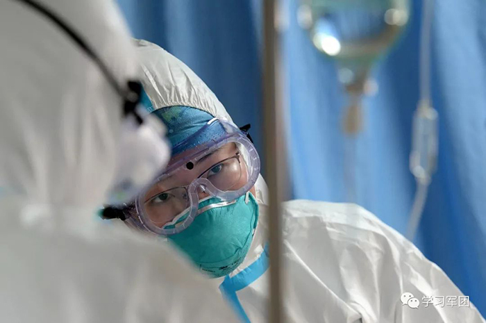1月27日上午,海軍軍醫(yī)大學(xué)醫(yī)療隊(duì)醫(yī)護(hù)人員在漢口醫(yī)院重癥監(jiān)護(hù)室對(duì)新型冠狀病毒感染的肺炎患者進(jìn)行救治。醫(yī)護(hù)人員迅速回應(yīng)患者呼喚。解放軍報(bào)記者范顯海攝