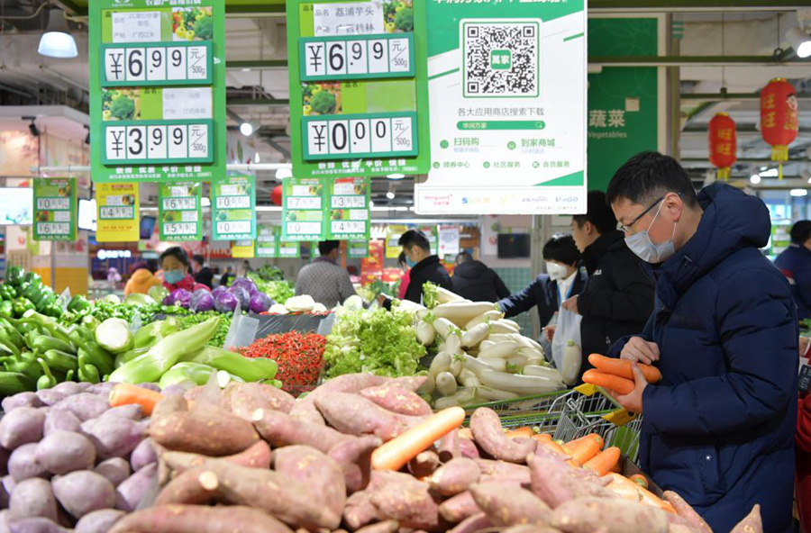 1月28日,在南昌市紅谷灘新區(qū)一家超市,市民在選購(gòu)蔬菜。近日,江西各地加大價(jià)格監(jiān)測(cè)和執(zhí)法檢查力度,著力維護(hù)市場(chǎng)價(jià)格穩(wěn)定。目前,全省重點(diǎn)生活必需品貨源充足,市場(chǎng)供應(yīng)有保障,價(jià)格總體穩(wěn)定。新華社記者彭昭之?dāng)z