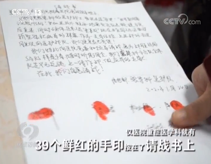 不到一天的時(shí)間,四川南充川北醫(yī)學(xué)院附屬醫(yī)院僅醫(yī)院重癥醫(yī)學(xué)科就有39個(gè)鮮紅的手印按在了請(qǐng)戰(zhàn)書(shū)上。