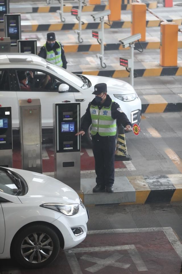 “現(xiàn)在我們每天有80名民警和輔警上崗,每班20人,每兩小時輪換一次。如果在檢查時遇到了車內(nèi)出現(xiàn)身體癥狀或體溫異常的乘客,會立即由衛(wèi)生防疫部門派來的醫(yī)生進行檢查,存在疑似可能的,立刻隔離,送開設(shè)發(fā)熱門診的醫(yī)院做進一步篩查。假如真的發(fā)生了與疑似病例密切接觸的情況,當(dāng)班的20名民警、輔警也會暫時隔離,確保不會因為檢查站內(nèi)部工作人員感染,反而放大了疫情?!?/p>