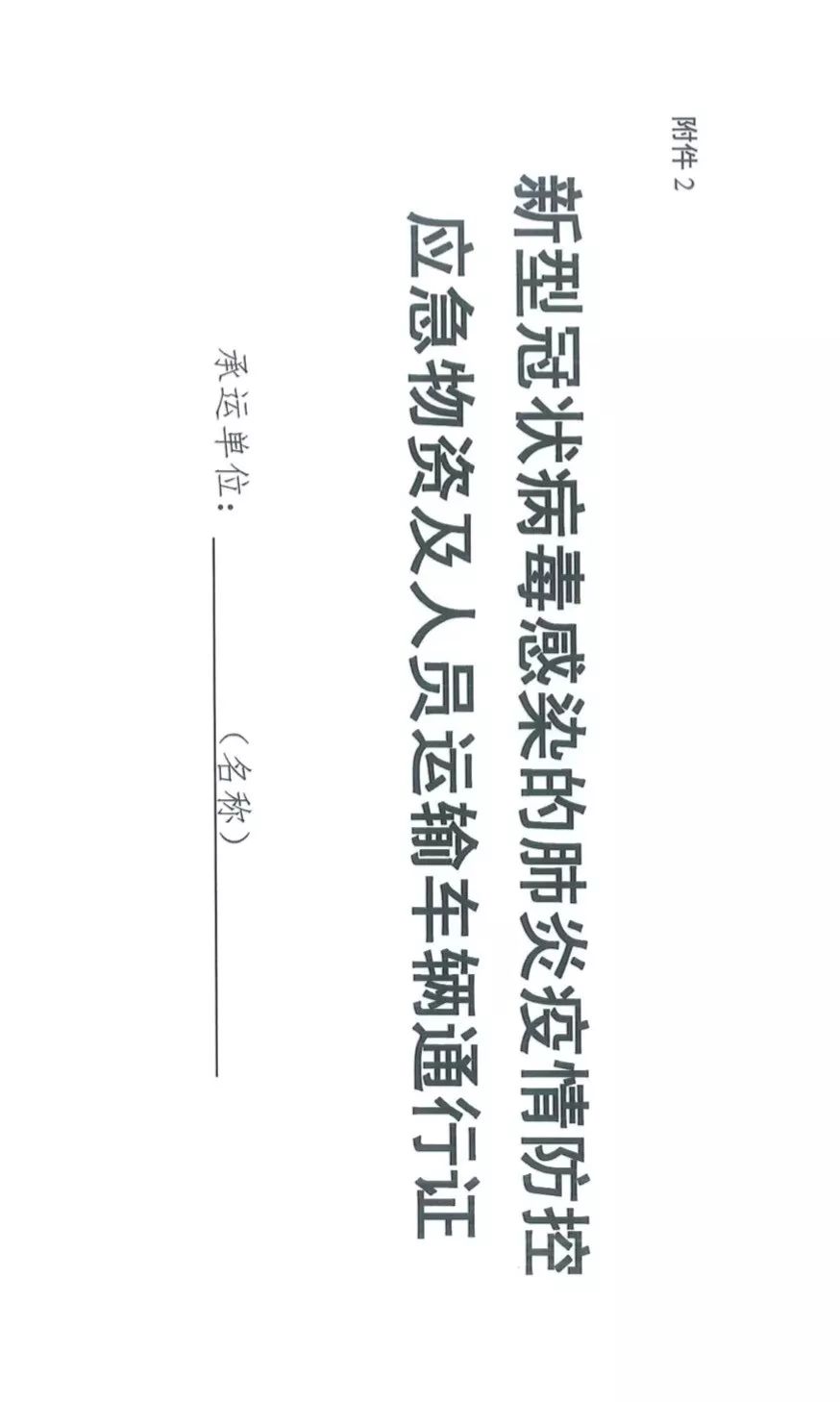 2 《新型冠狀病毒感染的肺炎疫情防控物資及人員運(yùn)輸車(chē)輛通行證》式樣