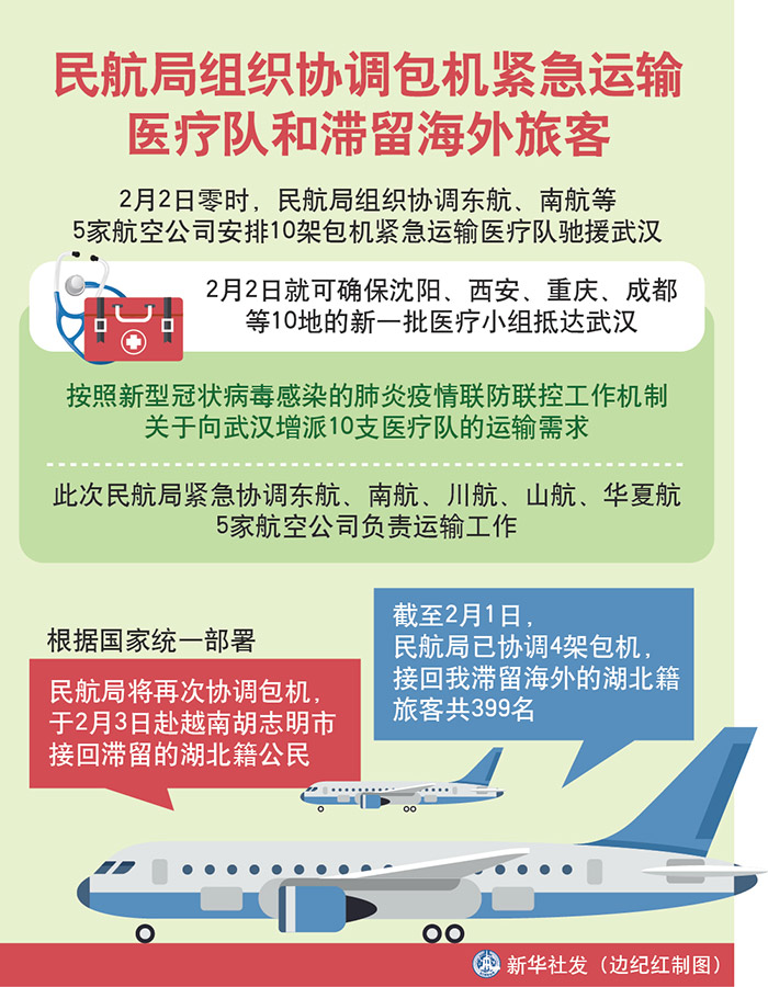 截至2月1日,民航局已協(xié)調4架包機,接回我滯留海外的湖北籍旅客共399名。