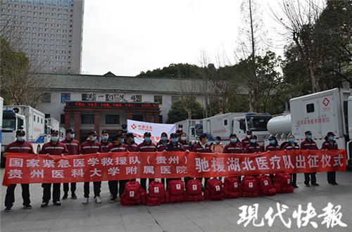 2月9日,根據(jù)國(guó)家衛(wèi)生健康委安排,國(guó)家緊急醫(yī)學(xué)救援隊(duì)(貴州)馳援湖北武漢執(zhí)行傳染病救治任務(wù)。救援隊(duì)由貴州醫(yī)科大學(xué)附屬醫(yī)院急診醫(yī)學(xué)科、感染管理科、內(nèi)科ICU、省緊急救援中心96999、檢驗(yàn)科、影像科、肝膽外科等科室共42名人員組成。