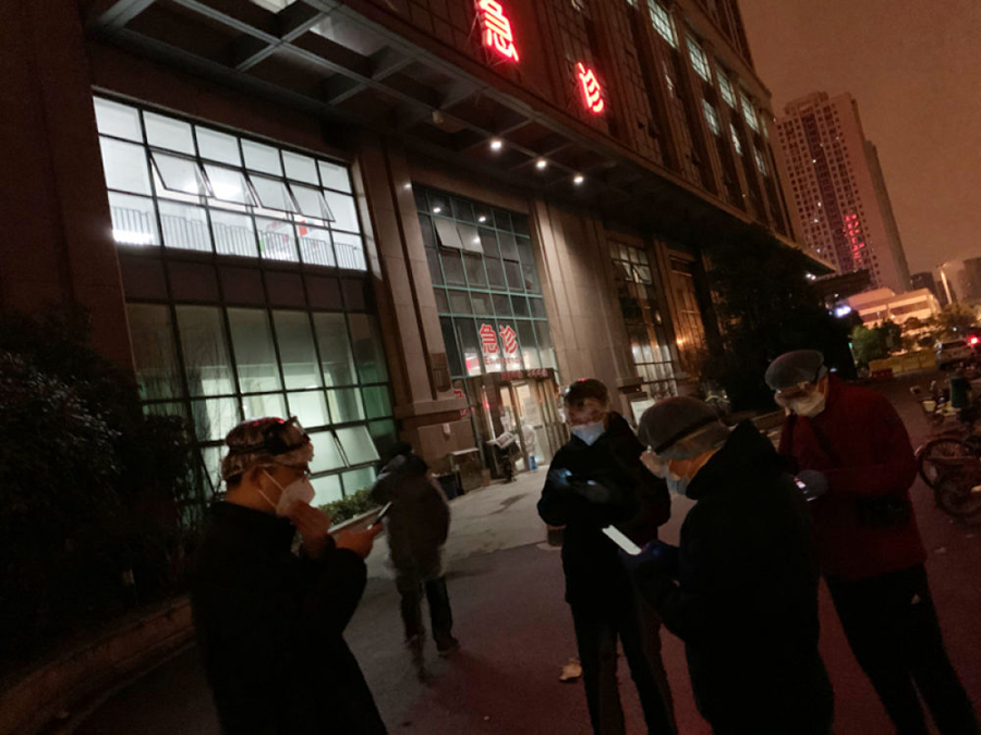 此時(shí)此地,也有太多眼淚和悲痛,還來(lái)不及釋放,就只能化作續(xù)步前行的力量。2月6日晚,李文亮醫(yī)生病危,全國(guó)網(wǎng)友悲慟,希望出現(xiàn)轉(zhuǎn)機(jī)。午夜時(shí)分我趕到他所在的醫(yī)院樓下,寒風(fēng)中,和一群同行站在門(mén)口,想不服輸?shù)氐纫粋€(gè)奇跡。直到凌晨3點(diǎn),沒(méi)有奇跡發(fā)生。因?yàn)樽叩么颐?,缺少防護(hù)用品,我放棄了貿(mào)然進(jìn)入隔離區(qū)拍攝的想法。在空無(wú)一人的醫(yī)院門(mén)口,只能深鞠一躬后離去。
