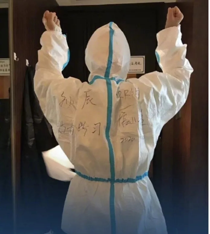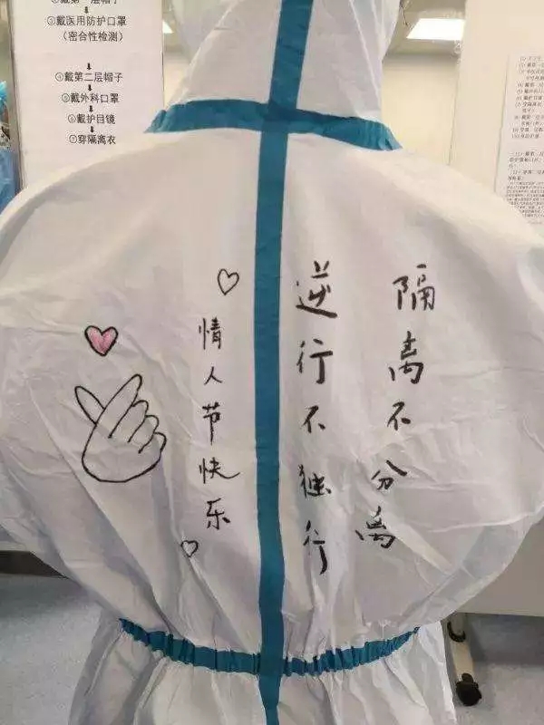 在防護(hù)服上寫(xiě)下了“武漢加油”