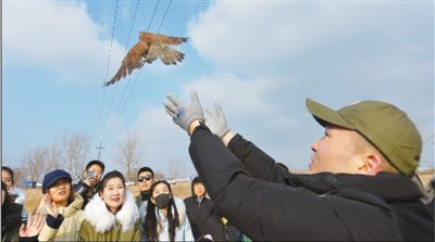 山東省青島市城陽區(qū)野生動植物保護(hù)志愿者在白沙河入??跐竦?,放歸一只救助的國家二級重點(diǎn)保護(hù)動物紅隼。 王海濱攝