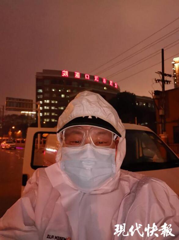 正式“工作”后,我接送的第一批疑似病人,是家住長(zhǎng)江邊某小區(qū)的一對(duì)夫妻,發(fā)熱、咳嗽。有時(shí)也會(huì)接到運(yùn)送輕癥和重癥病人轉(zhuǎn)院的任務(wù)。9 日晚上,我往返了好幾趟,將 4 名輕癥病人、6 名重癥病人,從江岸區(qū)的集中隔離點(diǎn)和小型醫(yī)院,轉(zhuǎn)移到武展“方艙醫(yī)院”和金銀潭醫(yī)院住院治療。從 9 日晚 8 點(diǎn)半一直忙到 10 日凌晨 1 點(diǎn)。