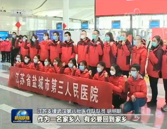 江蘇支援武漢第八批醫(yī)療隊隊員 胡明朝:在疫情的關(guān)鍵時期,全國人民支持。作為一名家鄉(xiāng)人,有必要回到家鄉(xiāng),做出我自己的貢獻(xiàn)。