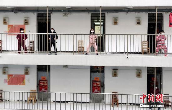 29日中午,作為康復(fù)期患者隔離點(diǎn)的武漢軟件工程職業(yè)學(xué)院5棟宿舍樓響起了音樂(lè),人們戴上口罩走出房門(mén),站在“口”字型走廊上練起八段錦和太極拳。