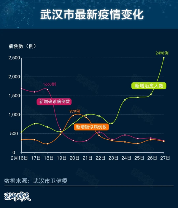從20日開始,新增治愈人數(shù)已連續(xù)8天超過新增確診人數(shù)。從21日開始,新增治愈人數(shù)也超過了新增疑似人數(shù)。這說明,進(jìn)出不僅達(dá)到了平衡,出院數(shù)還超過了新增確診病例數(shù)。