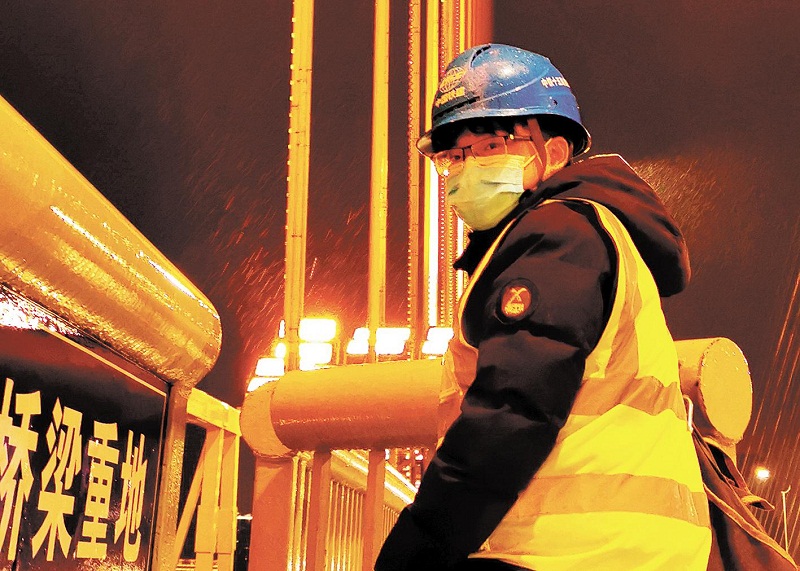 27歲的溫瑞是中鐵十五局電氣化公司武漢長(zhǎng)江主軸橋梁彩化亮化美化項(xiàng)目員工。到3月15日,他已經(jīng)獨(dú)守在橋下的小板房55天了。3天一小查,7天一大查,溫瑞背起工具包上橋,一巡就是4小時(shí)到6小時(shí)。溫瑞說(shuō),他守護(hù)的不僅僅是燈光,更是一種希望,傳遞著武漢人的信心和堅(jiān)強(qiáng)。(湖北日?qǐng)?bào)全媒記者 田悅 攝)