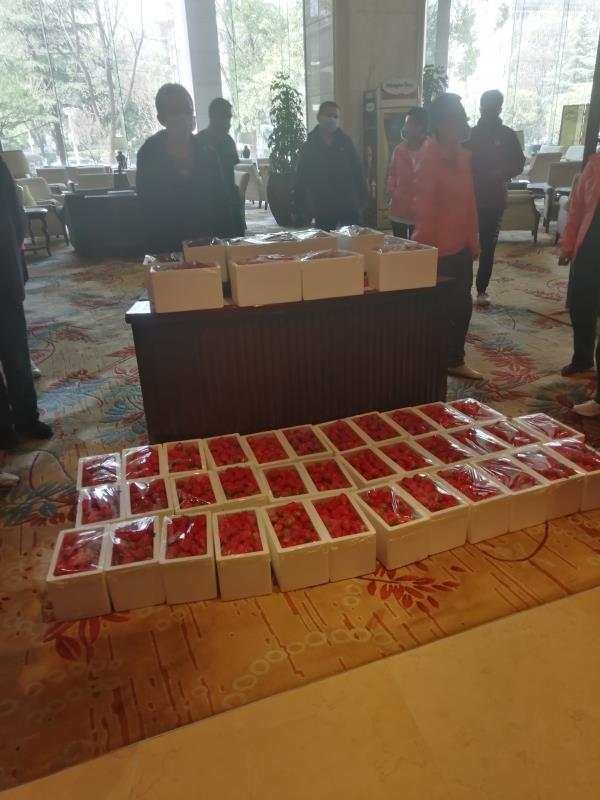 據(jù)前來送草莓的康復(fù)患者稱,這些草莓是江岸方艙醫(yī)院64名病友花費(fèi)了1.6萬元購買送給河北的醫(yī)護(hù)人員。為了保證草莓的新鮮,武漢當(dāng)?shù)剞r(nóng)民從凌晨3點(diǎn)就開始采摘?!斑@是我們的一點(diǎn)心意,如果不是你們的幫助,單靠武漢的醫(yī)務(wù)人員確實(shí)是挺不住的,很感謝你們從全國各地來幫助我們,這次疫情來的很突然,我的母親也因病毒感染去世。小家的母親走了,但是你們卻拯救了武漢這個(gè)大家。非常感謝你們。希望大家把這點(diǎn)心意和問候帶回河北,同時(shí)也希望大家一路平安,感謝你們對我們武漢的很大幫助。謝謝大家!”