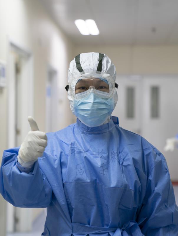 來到武漢已經(jīng)一個(gè)月了,周華坦言自己很想家。老父親因病排尿困難,長期插著導(dǎo)尿管,平日里都是周華親自給父親更換。如今,照顧年邁的父親和兒子的重任都落在愛人的身上了。同學(xué)、同事聽說她去醫(yī)療隊(duì),紛紛打電話、發(fā)微信告訴她“家里有事找我吧”。和家里人視頻,老父親耳背常聽不清她講話,她就沖著屏幕笑,給老父親豎大拇指,讓他知道自己很好,讓他放心。“我站在救治一線,是作為一名重癥醫(yī)學(xué)人的責(zé)任與使命,家人的支持讓我放下包袱、蹈險(xiǎn)逆行,后方的支援讓我堅(jiān)定信心、竭力抗疫。疫情不退,我們不撤!”