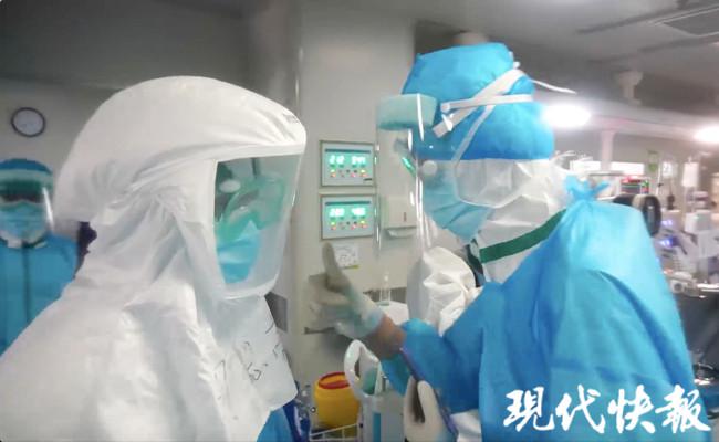 現(xiàn)代快報記者穿好防護服,與醫(yī)護人員一同進入重癥病房。