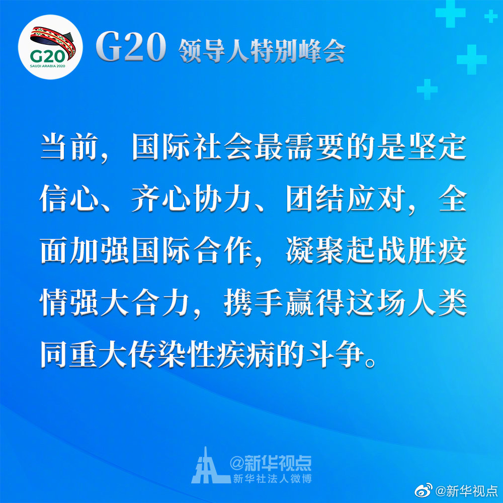 習(xí)近平在二十國(guó)集團(tuán)領(lǐng)導(dǎo)人應(yīng)對(duì)新冠肺炎特別峰會(huì)上重要講話金句