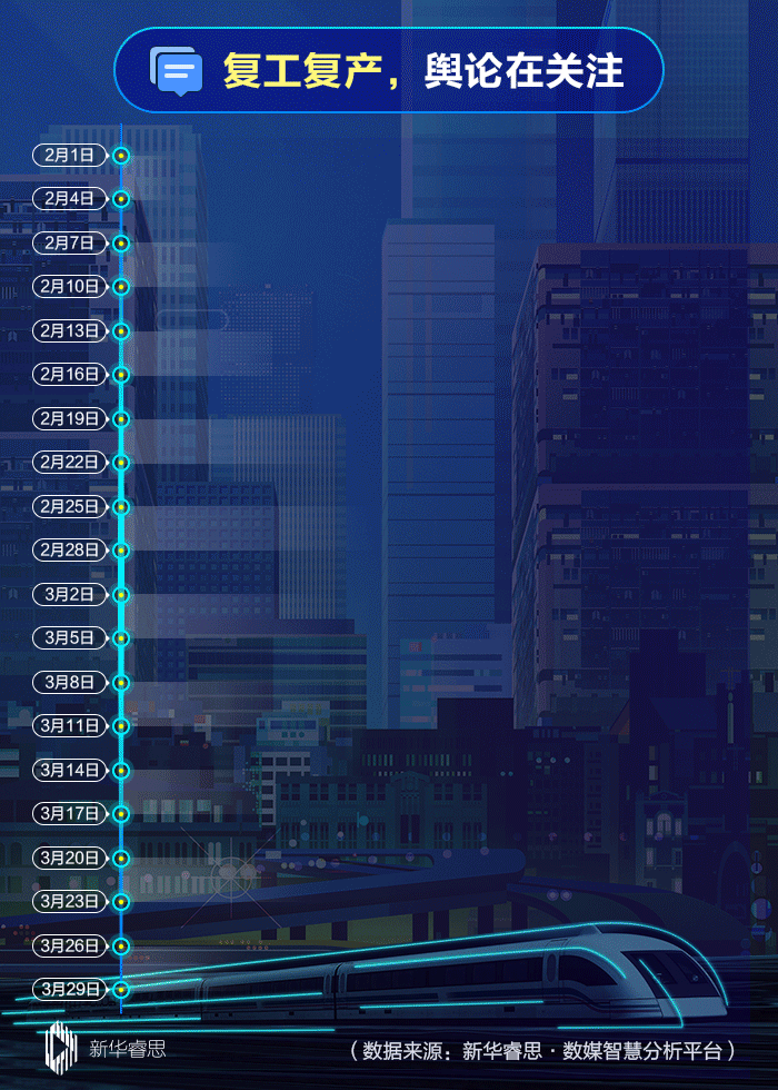 伴隨著復(fù)工復(fù)產(chǎn)步伐加大,相關(guān)話題在網(wǎng)上的信息量出現(xiàn)激增,關(guān)注熱度也明顯呈現(xiàn)出同步快速增長(zhǎng)的趨勢(shì)。