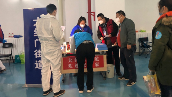 7、分流:到達(dá)豐臺(tái)體育中心后,按所在街道進(jìn)行分流。記者在完成體溫測(cè)量和身份驗(yàn)證后,乘坐大紅門街道組織的車輛前往社區(qū)。
