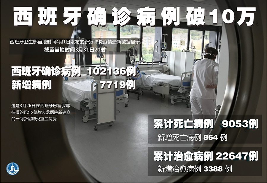 新華社馬德里4月1日電(謝宇智)西班牙衛(wèi)生部4月1日發(fā)布的新冠肺炎疫情最新數(shù)據(jù)顯示,該國累計確診病例已超過10萬例;單日新增死亡864例,創(chuàng)疫情暴發(fā)以來的新高。