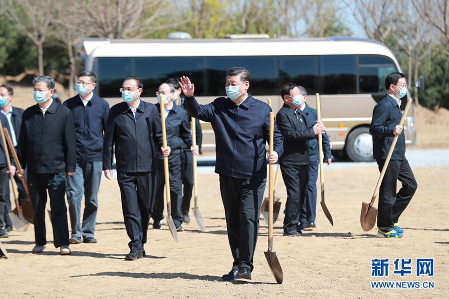 4月3日,黨和國家領導人習近平、李克強、栗戰(zhàn)書、汪洋、王滬寧、趙樂際、韓正、王岐山等來到北京市大興區(qū)舊宮鎮(zhèn)參加首都義務植樹活動。 新華社記者 龐興雷 攝