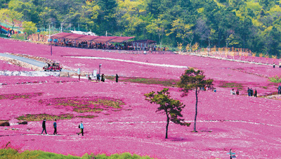 4月6日,江蘇省句容市芝櫻小鎮(zhèn)400余畝芝櫻花陸續(xù)進入盛花期,景區(qū)在做好疫情防控的基礎(chǔ)上向游客開放。鐘學滿 張映鋼攝