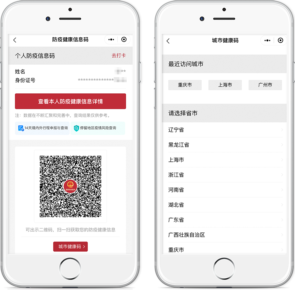 “防疫健康信息碼”為你的跨省出行保駕護(hù)航,關(guān)聯(lián)全國(guó)31個(gè)?。▍^(qū)、市)及新疆生產(chǎn)建設(shè)兵團(tuán)防疫“健康碼”信息,實(shí)現(xiàn)了信息共享和互通互認(rèn),全國(guó)絕大部分地區(qū)可“一碼通行”。