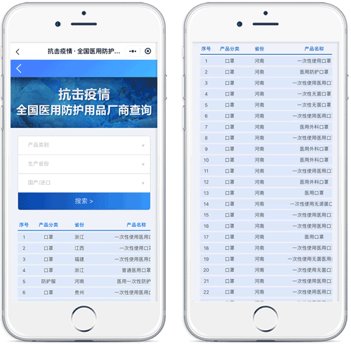 在頁(yè)面輸入對(duì)應(yīng)信息,即可查詢(xún)到有相關(guān)資質(zhì)的廠商名單。再拿出你的防護(hù)用品對(duì)照注冊(cè)證編號(hào)等信息是否準(zhǔn)確無(wú)誤,凡未經(jīng)藥監(jiān)局系統(tǒng)批準(zhǔn)的廠商產(chǎn)品,都不具備醫(yī)用資質(zhì)和效果。