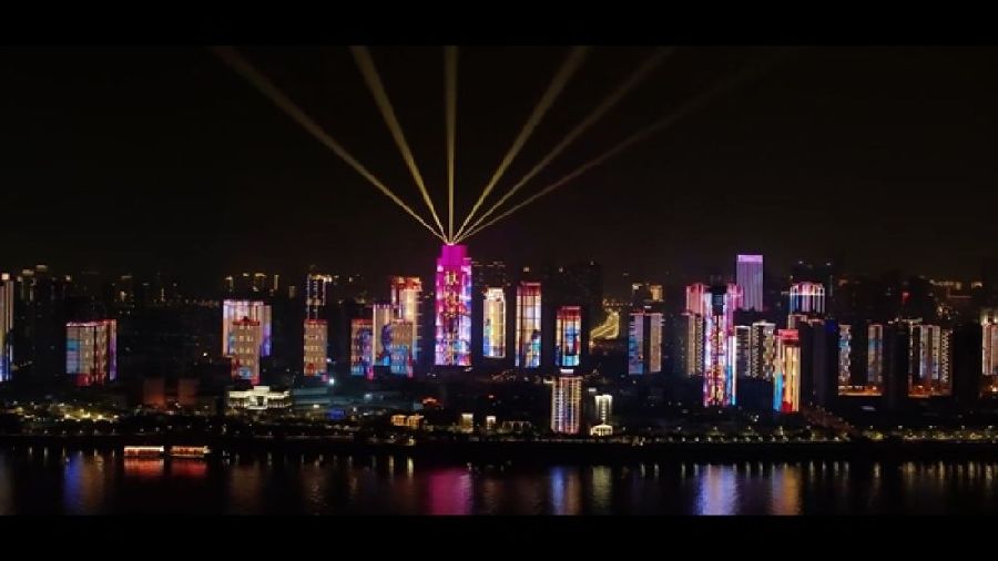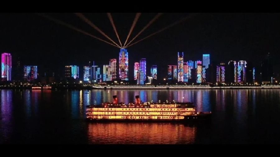 來自這座城市的滿滿謝意,將長江裝點成閃耀的“銀河”,與星空交相輝映。