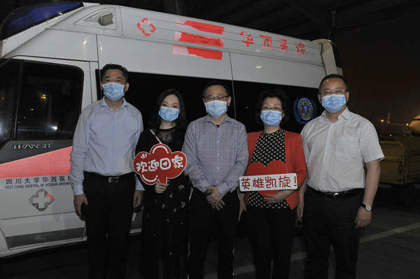 四川省衛(wèi)生健康委黨組成員、副主任宋世貴受省應(yīng)對(duì)新冠肺炎疫情防控應(yīng)急指揮部副指揮長(zhǎng)、省衛(wèi)生健康委黨組書(shū)記沈驥、省應(yīng)對(duì)新冠肺炎疫情防控應(yīng)急指揮部副指揮長(zhǎng)、省衛(wèi)生健康委主任何延政的委托,與四川大學(xué)華西醫(yī)院副院長(zhǎng)劉倫旭率領(lǐng)相關(guān)人員到機(jī)場(chǎng)迎接。宋世貴表示,四川堅(jiān)決貫徹落實(shí)黨中央部署,堅(jiān)持全國(guó)一盤(pán)棋,一方有難,八方支援,選派優(yōu)秀的專(zhuān)家進(jìn)行戰(zhàn)疫馳援。這次大災(zāi)來(lái)了之后,康焰剛從武漢戰(zhàn)斗回到四川不到3天,又受?chē)?guó)務(wù)院應(yīng)對(duì)新型冠狀病毒肺炎疫情聯(lián)防聯(lián)控機(jī)制醫(yī)療救治組委派,轉(zhuǎn)戰(zhàn)綏芬河、牡丹江,一直在前方堅(jiān)持戰(zhàn)疫,工作很出色,是全省衛(wèi)生健康系統(tǒng)的優(yōu)秀代表,也得到了國(guó)家衛(wèi)健委的充分肯定。