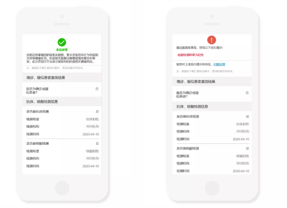 如核酸檢測結果為陽性,防疫健康信息則會出現“核酸檢測結果為陽性”的出行提示。