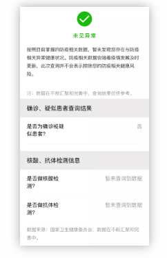 如核酸檢測結果為陰性,則防疫健康風險狀態(tài)顯示“未見異常”。