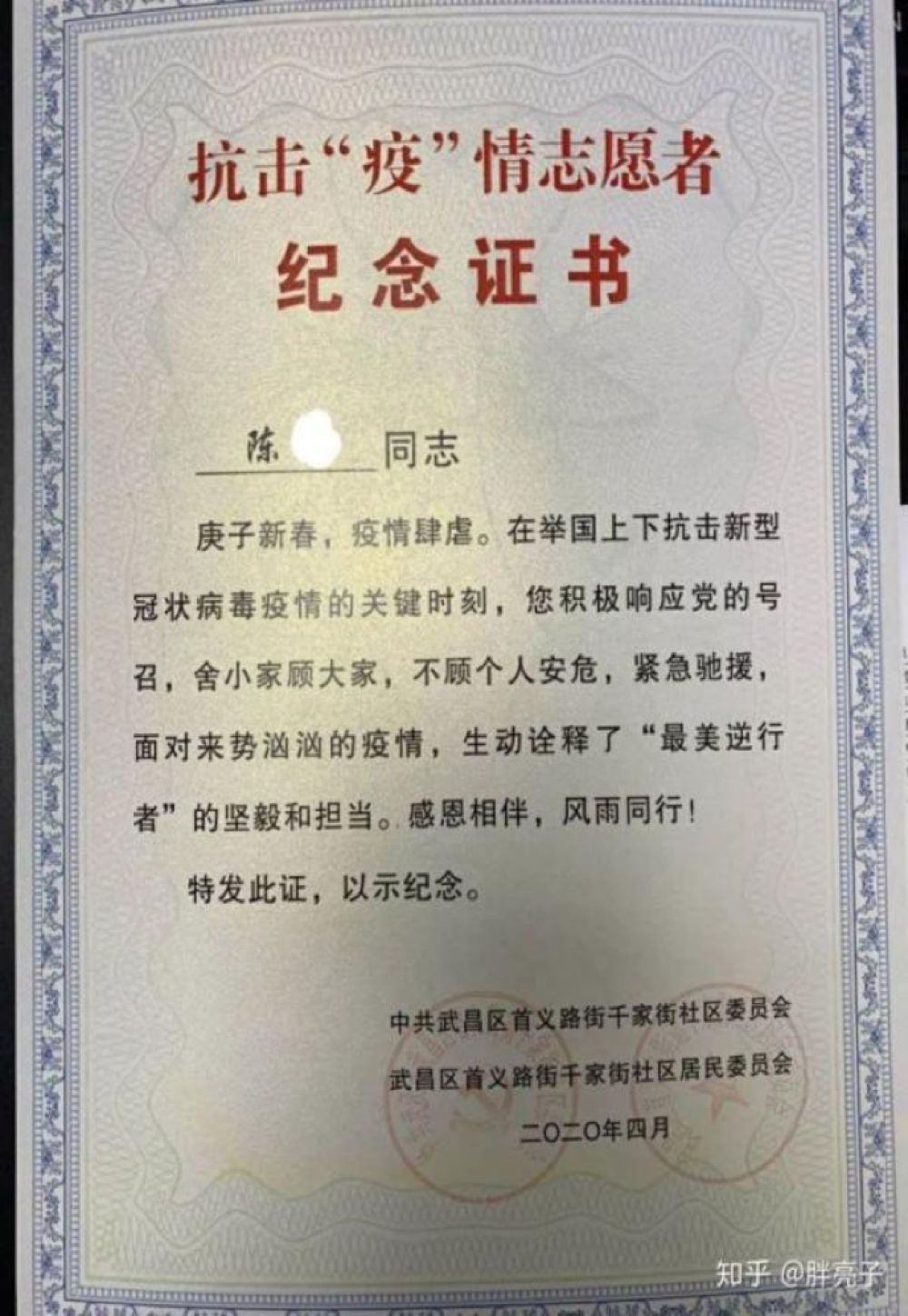 在武漢,網(wǎng)友“胖亮子”說,2月底,他的妻子接到下沉社區(qū)做志愿者的通知,可以自愿選擇,但她很快答應(yīng)了?!捌綍r有點潔癖而且膽小的老婆在這個時候能夠挺身而出,讓我刮目相看。”